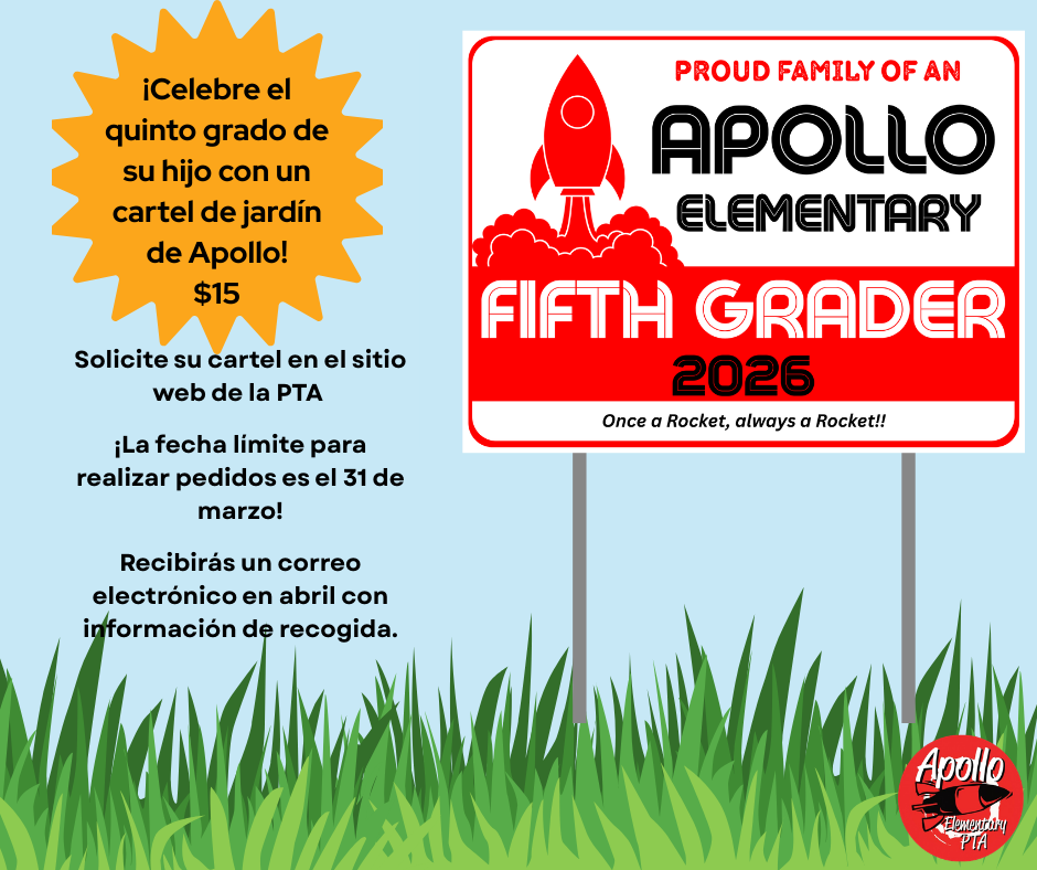 We need 3 PTA members to be the nominating committee to help find volunteers to be on the board of the PTA for the next school year. Serving on this committee is a short-term, highly impactful way to help your school community—no prior experience is required, just good judgment, discretion, and an interest in supporting strong PTA leadership. We can't do this without you! Please reach out to president@apollopta.org for any questions. We need volunteers urgently! Sign up here